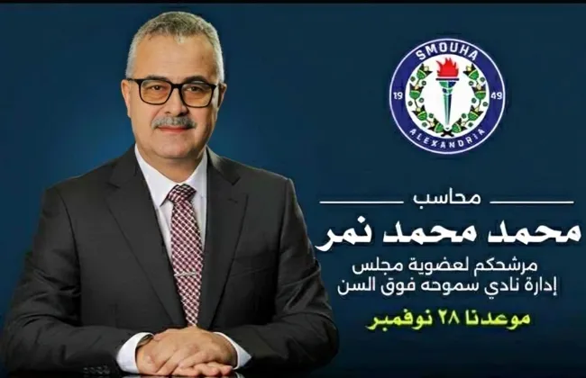 بكل الحب والاحترام، أزكي وأدعم أخي وصديقي الغالي الأستاذ محمد محمد نمر، المرشح لعضوية مجلس إدارة نادي سموحة فوق السن.