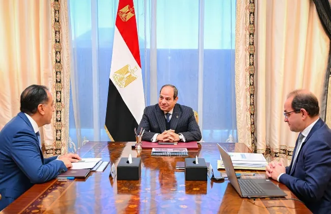 جاء ذلك خلال اجتماع الرئيس السيسي، اليوم، مع الدكتور مصطفى مدبولي رئيس مجلس الوزراء ة وأحمد كجوك وزير المالية