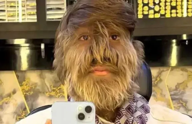 تسمى "متلازمة المستذئب"، وهى حالة نادرة تسمى فرط الشعر أو "متلازمة المستذئب"، إذ يبلغ