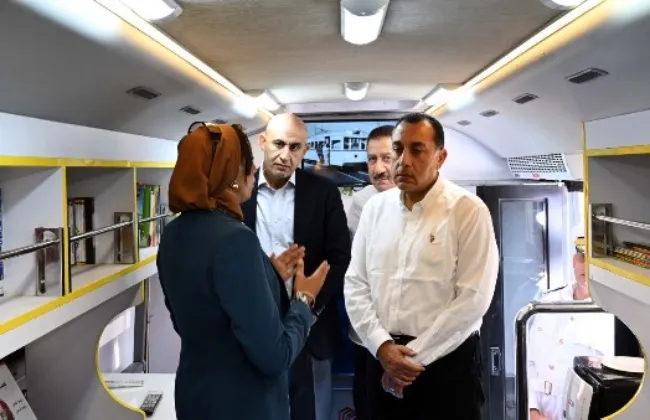 رئيس الوزراء يتفقد وحدة المكتبة المتنقلة بقرية شمّا أشمون بالمنوفية