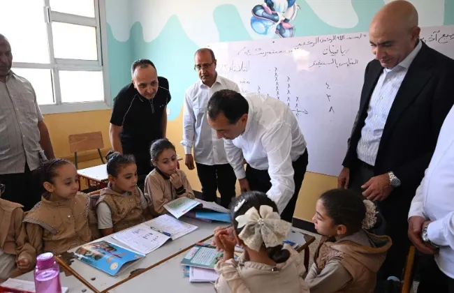 واستهل رئيس الوزراء زيارته للمنشآت التعليمية بتفقد مدرسة الشهيد سامح طاحون الابتدائية
