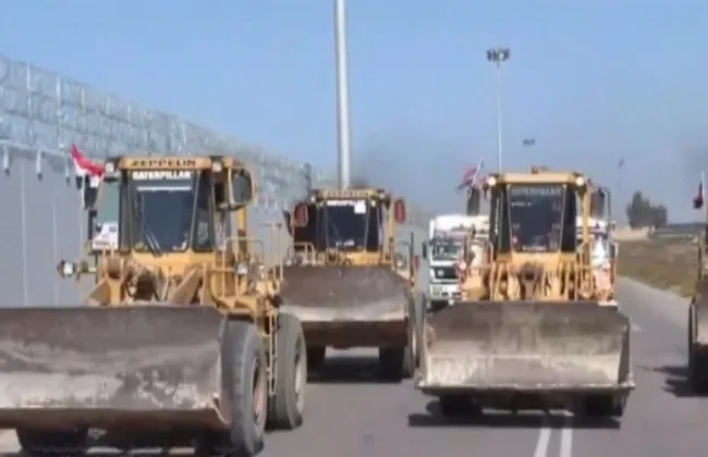 وذكر مراسل القاهرة الإخبارية، أن الفلسطينيين في قطاع غزة استقبلوا معدات إعادة الإعمار القادمة
