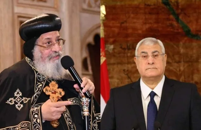 من المستشار عدلي منصور رئيس الجمهورية السابق، وذلك لتهنئة قداسته بعيد الميلاد المجيد