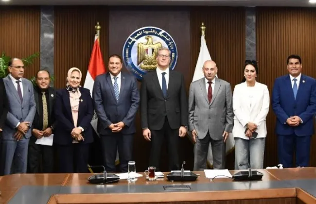 السفير إيريك شوفالييه سفير فرنسا لدى القاهرة والوفد المرافق ، لبحث سبل دعم وتعزيز فرص التعاون والشراكة