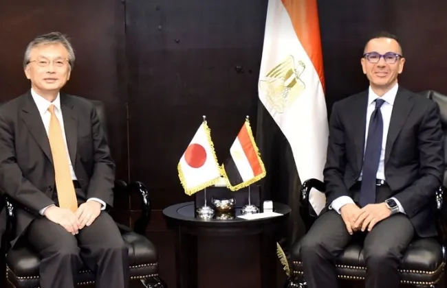 هيروشي أوكا السفير الياباني بالقاهرة، وحسام هيبة رئيس الهيئة العامة للاستثمار والمناطق الحرة