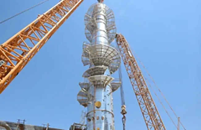 البترول: رفع برج بوزن 330 طن بمشروع مجمع التفحيم بالسويس