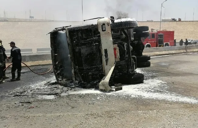 انقلاب سيارة نقل ثقيل محملة بالسولار، اتجاه المرج، وذلك بعد تعطل الحركة المرورية حوالى ساعة، وتحرر محضر بالواقعة