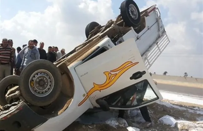 إصابة 11 شخصا فى انقلاب سيارة ربع نقل على الطريق الدولى