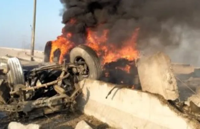 حريق سيارتى نقل بالطريق الاقليمى و مصرع شخص و اصابة اخر