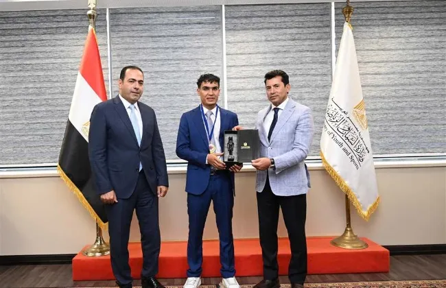 وزير الرياضة يلتقى بطل الكيك بوكس محمد راتب بعد اختياره تمثيل منتخب مصر