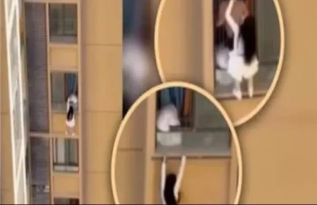 فيديو صادم يوثق محاولة هروب عشيقة من الطابق العاشر في الصين